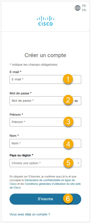 Pour télécharger la solution CML, vous devez avoir un compte CISCO. Si cela n’est pas fait, je vous invite à en créer un à l’adresse suivante :