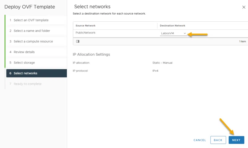 Le réseau virtuel "LabosVM" sera sélectionné.