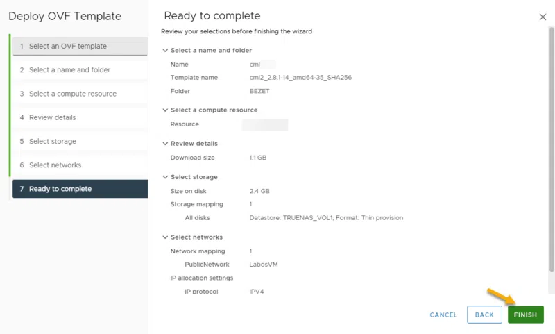 En cliquant sur « Finish », vous lancez le déploiement de votre VM sur votre environnement.