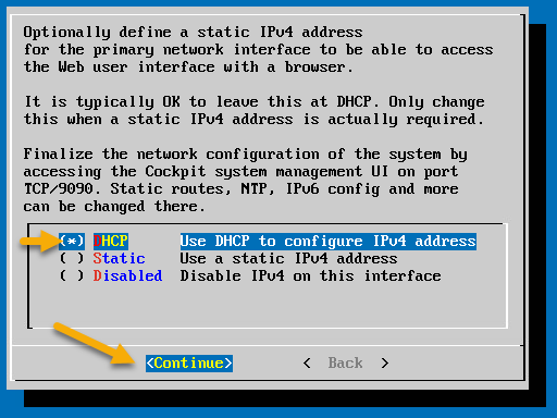 Il est ensuite nécessaire de configurer le réseau. Ici, nous serons en adressage IP via DHCP.