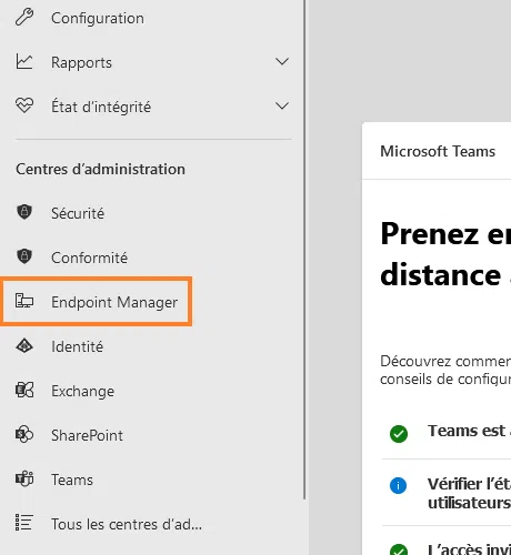 Pour cela, rendez-vous sur la console d'administration Microsoft. Cliquez à présent sur « Endpoint Manager » pour accéder au Centre d'administration Microsoft Intune.