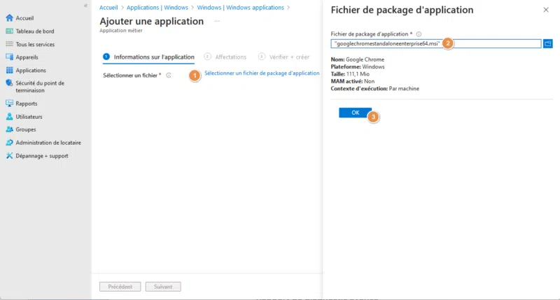 III. Créer une application métier dans Intune
