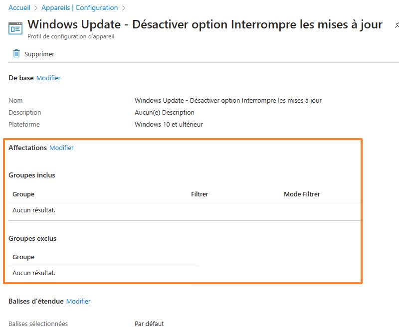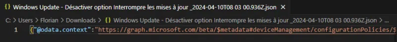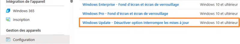 Pour cette démonstration, nous allons exporter la stratégie "Windows Update - Désactiver option "Interrompre les mises à jour" présente sur un tenant Microsoft 365 puis l'importer sur un autre tenant Microsoft 365. Il s'agit d'une stratégie pour Windows, mais ceci fonctionne aussi avec les autres plateformes.