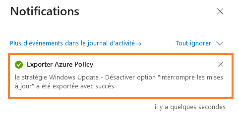 Quelques secondes plus tard, un nouveau fichier au format JSON a été téléchargé sur votre machine. La notification "Exporter Azure Policy" est également visible dans le portail Intune.