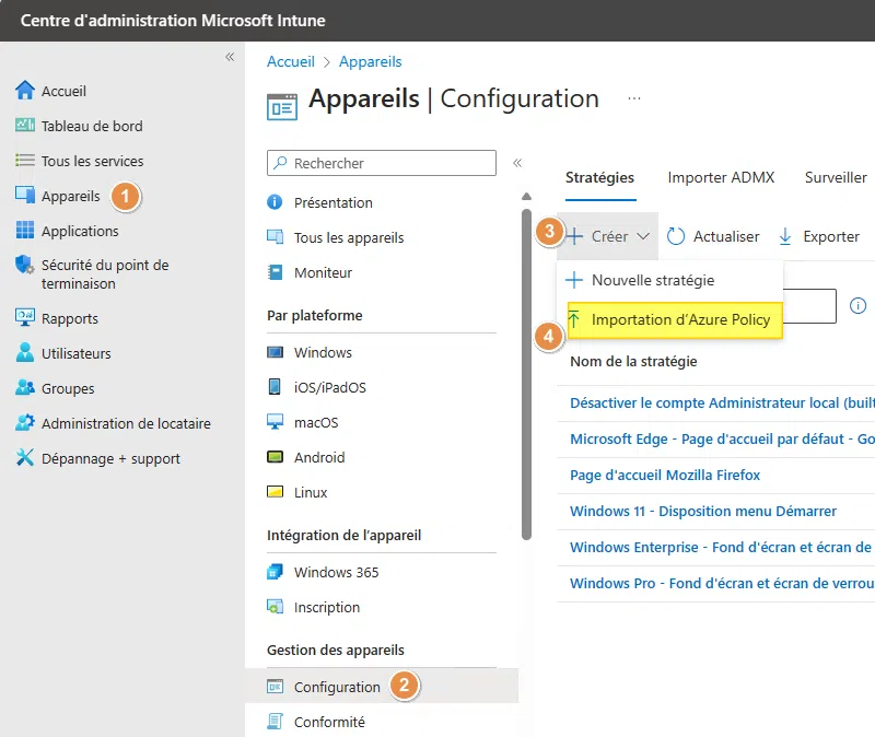 Toujours à partir du portail Intune, suivez le chemin suivant :