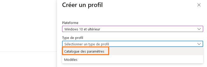 Mais, attention, pour le moment, la méthode disponible via le Centre d'administration Intune s'applique uniquement sur les profils de configuration basés sur le "Catalogue des paramètres". Autrement dit, sur le type de profil "Catalogue des paramètres" (Catalog settings) visible sur l'image ci-dessous. Si vous avez besoin d'aller plus loin dans l'export/import de configuration Intune : consultez le lien présent à la fin de cet article.