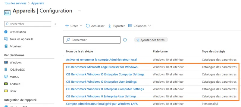 Quelques secondes plus tard, ces stratégies sont importées dans Intune et visibles à partir du portail. Il ne reste plus qu'à en profiter !