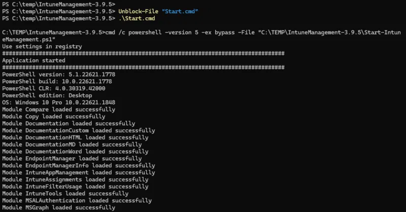 Il existe plusieurs scripts permettant de lancer l'outil : "Start.cmd", "Start-WithApp.cmd", "Start-WithConsole.cmd", "Start-WithJson.cmd", et "Start-IntuneManagement.ps1". Tout dépend de l'usage que vous souhaitez faire de l'outil et j'avoue ne pas avoir testé l'ensemble de ces scripts. Ici, nous allons exécuter le script nommé "Start-IntuneManagement.ps1" (j'ai rencontré des problèmes de connexion via "Start.cmd" avec la version 3.9.6).