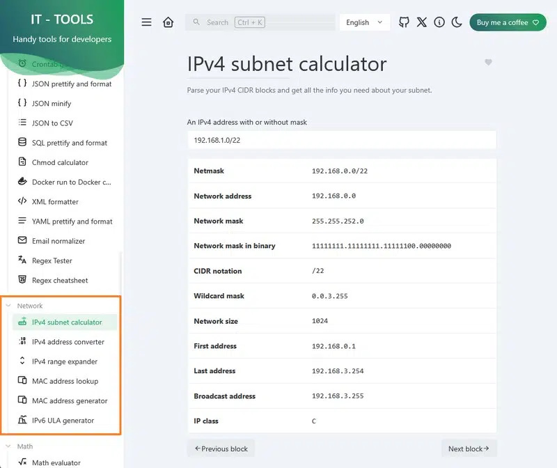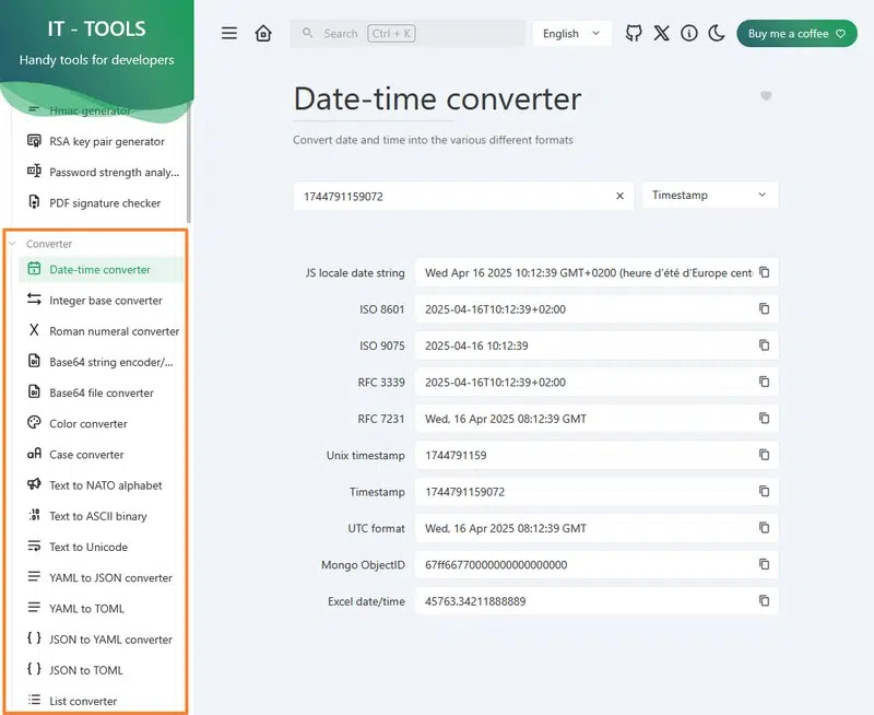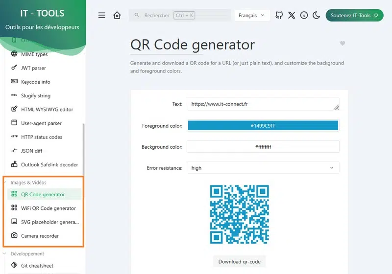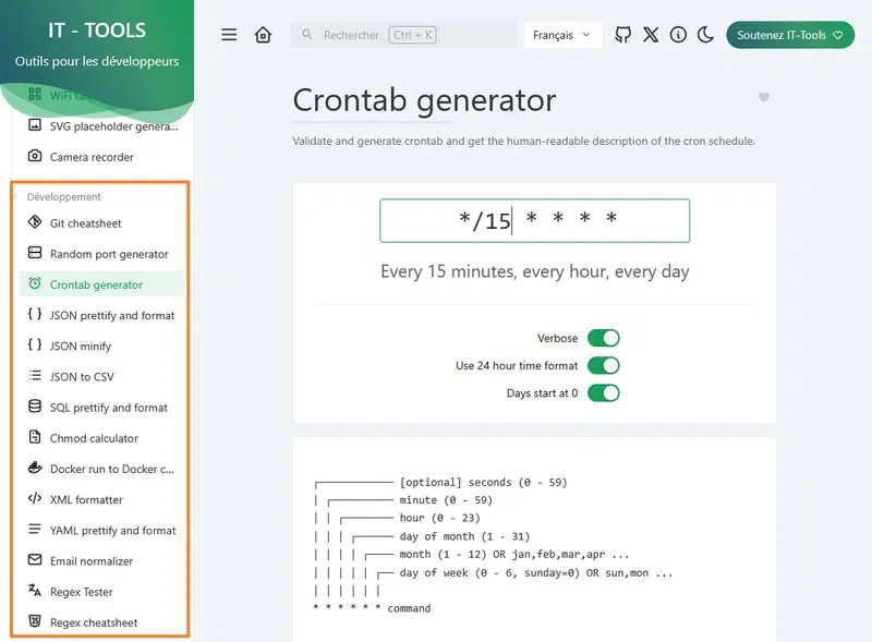 IT-Tools est un projet open source créé par Corentin Thomasset, un français (de Lyon), et qui contient de nombreux outils organisés en plusieurs catégories. Le projet est disponible sur GitHub et il y a également une version en ligne accessible à l'adresse it-tools.tech.