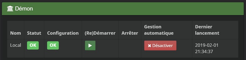 Sur Jeedom, retournez sur la page du plugin Bluetooth Advertisement et relancez l'installation des dépendances, simplement en cliquant sur le bouton "Relancer".