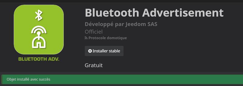 Plugins > Gestion des plugins > Market > Bluetooth Advertisement
