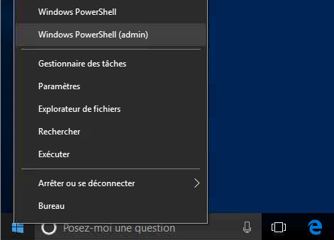 Ouvrez la console PowerShell en tant qu'administrateur.