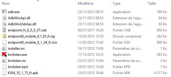 On peut remarquer la présence de différents packages d’installation pour smartphone, avec le fichier .cab pour Windows Mobile, le .sisx pour Symbian OS, le .zip pour BlackBerry OS et le .apk pour Android.