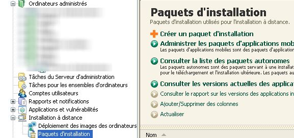 Dans la console d’administration, accédez à « Installation à distance » puis « Paquets d’installation ». Dans le volet de droite, cliquez sur « Créer un paquet d’installation ».