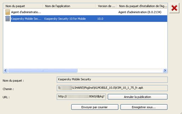 Cliquez sur « Générer un paquet d’installation pour l’application de Kaspersky Lab » et à la prochaine étape donnez un nom à ce package (exemple : Kaspersky Security for Mobile 10).
