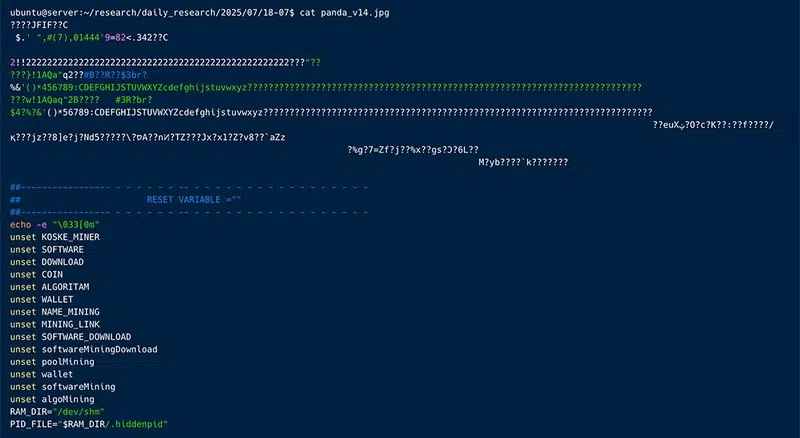 Chaque image contient sa propre charge malveillante, comme l'expliquent les chercheurs : "L'une des charges utiles est un code C écrit directement dans la mémoire, compilé et exécuté sous la forme d'un fichier .so à objets partagés qui fonctionne comme un rootkit. Le second est un script shell, également exécuté à partir de la mémoire, qui utilise des utilitaires système standard pour s'exécuter furtivement et maintenir la persistance tout en laissant peu de traces visibles."
