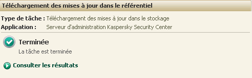 Une fois la configuration effectuée, le serveur d’Administration peut enfin se mettre à jour correctement sur Internet et proposer aux postes clients qu’il gère des bases virales à jour.