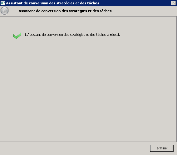 L’assistant valide que la conversion a été faite avec succès, cliquez sur « Terminer ».