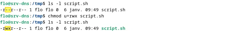Désormais, nous allons voir quelques exemples d'utilisation de la commande chmod avec le mode numérique.