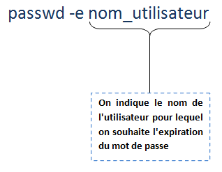 Pour réaliser cette action, l'option "-e" ou "--expire" doit être utilisée, selon la syntaxe suivante :