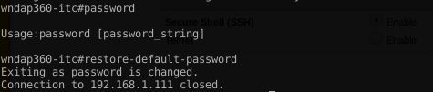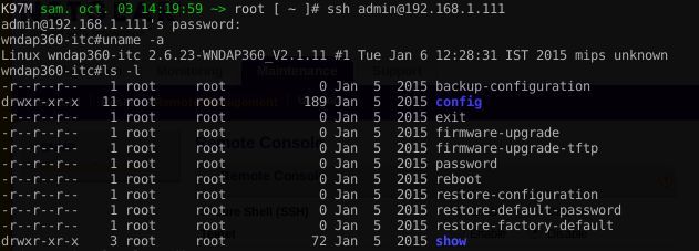 Les identifiants à utiliser sont les mêmes que ceux de l'interface web. On remarque donc la présence de différence script et fichier de configuration. On peut par exemple réinitialiser la configuration de la borne, mettre à jour son firmware, changer/restaurer le mot de passe de l'administrateur :