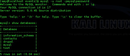mysql –u root –pmysqlpassword