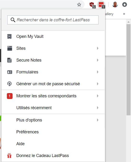 Lorsque votre coffre-fort est déverrouillé, vous pouvez y accéder directement depuis votre navigateur sans accéder au site LastPass, ce qui est plutôt pratique. Surtout, cela permettra à LastPass de vous authentifier sur les sites grâce aux identifiants enregistrés.