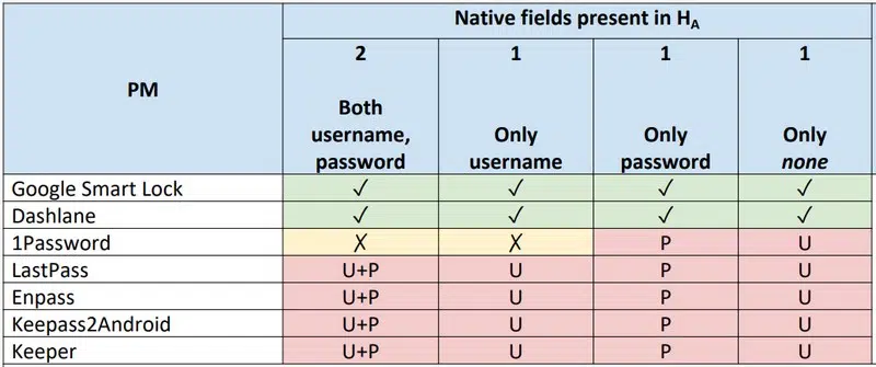 Ce tableau montre qu'il y a deux bons élèves : Google Smart Lock 13.30.8.26 et DashLane 6.2221.3, car le processus de remplissage automatique fonctionne différemment. De ce fait, ils ne sont pas vulnérables à la technique AutoSpill. Enfin, il faut savoir qu'en cas d'injection JavaScript, tous les gestionnaires de mots de passe sur Android sont vulnérables à l'attaque AutoSpill. Du côté de chez 1Password, il y a déjà un travail en cours sur un correctif pour se protéger d'AutoSpill. C'est dommage que Bitwarden ne soit pas dans la liste des solutions évaluées.