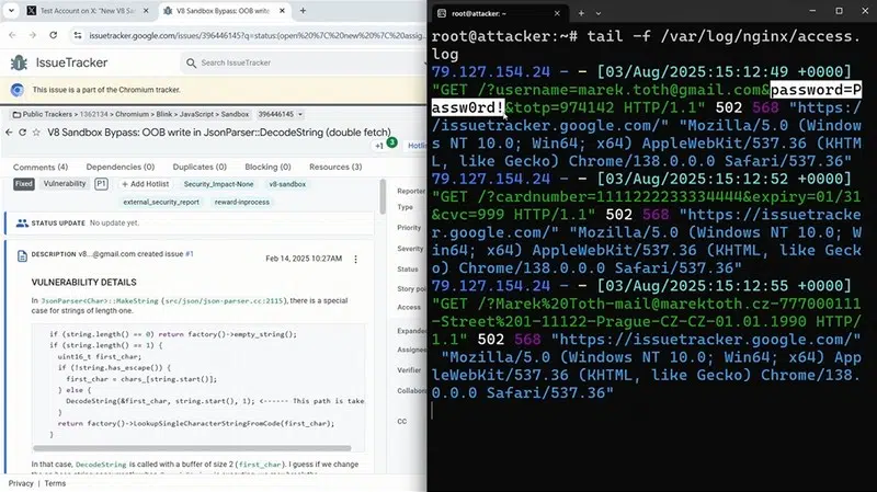 - Les identifiants sont alors insérés dans le formulaire caché et immédiatement exfiltrés vers un serveur contrôlé par l'attaquant.
