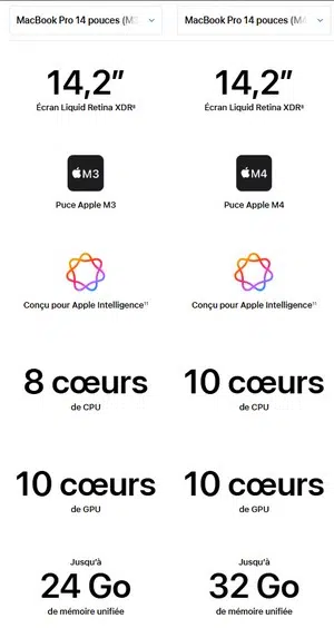Que ce soit le MacBook Pro M3 ou M4, ce sont des modèles conçus pour Apple Intelligence, et donc déjà prêts pour optimiser les traitements liés à l'intelligence artificielle. Aujourd'hui encore, le MacBook Pro M3 représente un excellent choix et ce serait aberrant si ce n'était pas le cas : il est disponible seulement depuis 1 an sur le marché des ordinateurs portables....