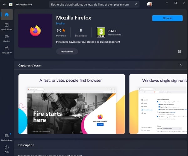 Le navigateur Firefox est disponible dans le Microsoft Store