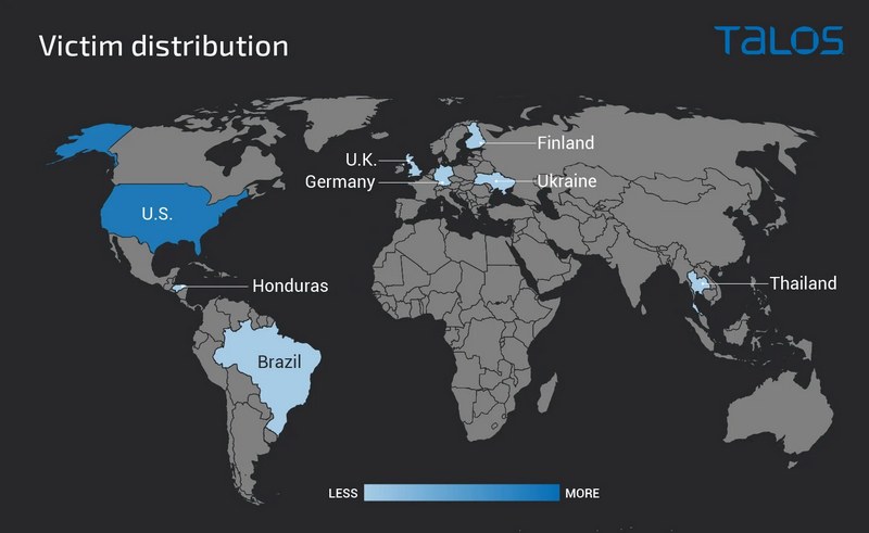 La carte des victimes publiée par Cisco ne met pas en évidence de victimes en France. Néanmoins, il y en a dans de nombreux pays y compris en Europe : les États-Unis, le Brésil, la Thaïlande, l'Ukraine, le Royaume-Uni, la Finlande et l'Allemagne. L'origine des attaques est connue : Moscou, en Russie, mais pour autant le rapport publié par Cisco Talos n'attribue pas ces attaques à un groupe de hackers spécifique.