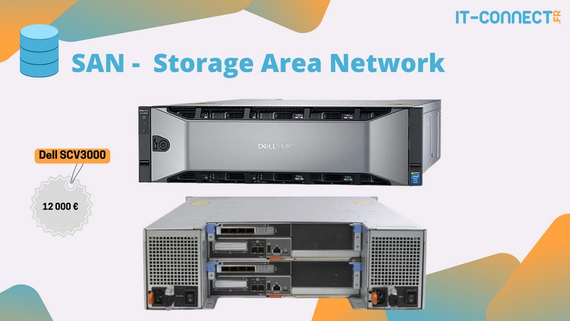 En ce qui concerne le budget à prévoir, tout dépend du niveau de gamme de la baie SAN, mais également de la capacité de stockage souhaitée et du type de disques (disques durs ou disques SSD). Cela peut aller de 12 000 euros à plusieurs dizaines de milliers d'euros... Voici un exemple avec une baie Dell EMC SCV3000, sans disque.