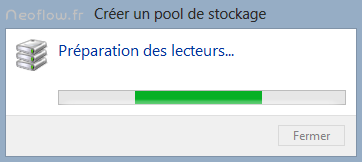 Il est aussi possible d’ajouter des lecteurs afin d’augmenter la capacité de stockage de votre pool en cliquant sur « Ajouter des lecteurs », de créer un nouvel espace de stockage en cliquant sur « Créer un espace de stockage ».
