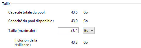 Selon les disques que vous avez sélectionnés pour la création du pool, cela vous donne une capacité globale que Windows utilise pour calculer la taille maximale de votre Espace selon le type de résilience que vous avez choisi.