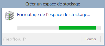 Cliquez sur « Créer un espace de stockage » lorsque vous avez fini le paramétrage, puis, patientez.