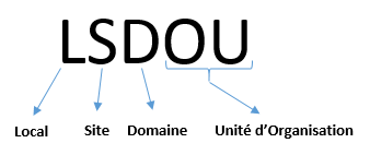 L'acronyme LSDOU spécifie l'ordre d'application des stratégies de groupe. De ce fait, la stratégie Locale est appliquée en première et ensuite : Site, Domaine et Unité d'Organisation (Organizational Unit).