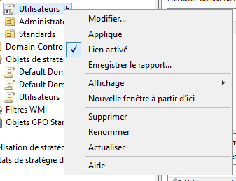 Vous devez vérifier que les liens sont corrects, notamment actifs pour la GPO qui doit s'appliquer.