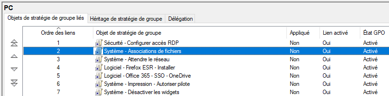 On reconnaît facilement une GPO sur laquelle le paramètre « Appliqué » est défini à « Oui », car l’icône contient un verrou.