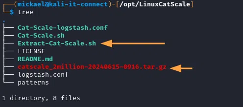 Maintenant que nous possédons cette archive, nous n'avons en principe plus besoin d’intervenir sur le système compromis, celle-ci devrait nous suffire pour nos recherches. Il est préconisé par l’éditeur du script de décompresser l’archive ".tar.gz" obtenue grâce au script fournit ("Extract-Cat-Scale.sh"). Il faut alors s’assurer que l’archive ".tar.gz" est dans le même répertoire que le script utilisé :