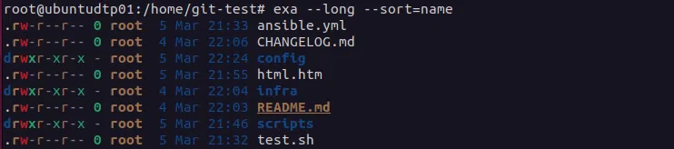 exa --long --sort=name