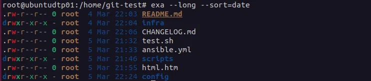 exa --long --sort=date