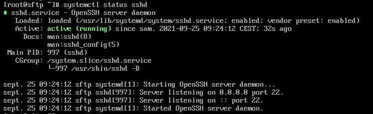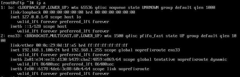 [root@sftp ~]#systemctl restart network # Sous Debian : systemctl restart networking