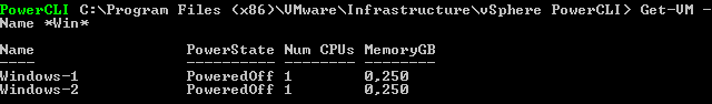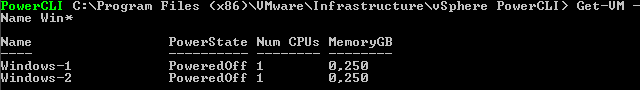 Le caractère « * » après « Win » permet d’indiquer qu’on veut lister les VMs dont le nom contient « Win » suivit de d’autres caractères.
