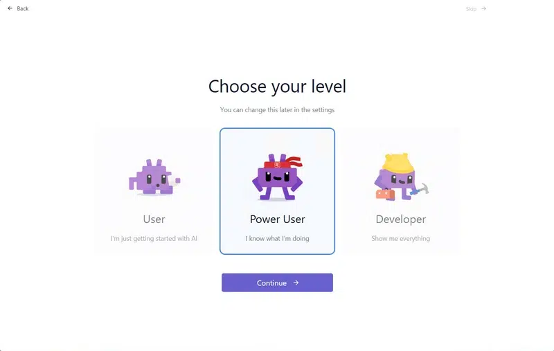 Positionnez-vous en tant que Power User. Ce choix influence l'interface de LM Studio, et donc les options visibles.