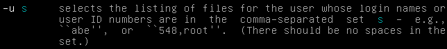 Nous voyons ici que nous pouvons spécifier un utilisateur avec l'option "-u <utilisateur>" :