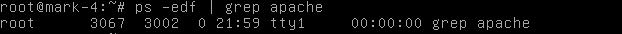 Le PID du processus Apache est le premier numéro (2ème colonne). Nous pourrons donc spécifier ce numéro comme suivant à la commande LSOF pour avoir les fichiers ouverts par apache:
