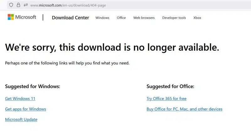 Pourtant, Microsoft a pris une décision : supprimer le téléchargement de MDT version 8456, la version la plus récente à ce jour. Ce lien officiel, qui est référencé sur Google, mène désormais sur une page d'erreur 404 : "Nous sommes désolés, ce téléchargement n'est plus disponible.".