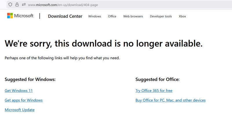 Pourtant, Microsoft a pris une décision : supprimer le téléchargement de MDT version 8456, la version la plus récente à ce jour. Ce lien officiel, qui est référencé sur Google, mène désormais sur une page d'erreur 404 : "Nous sommes désolés, ce téléchargement n'est plus disponible.".