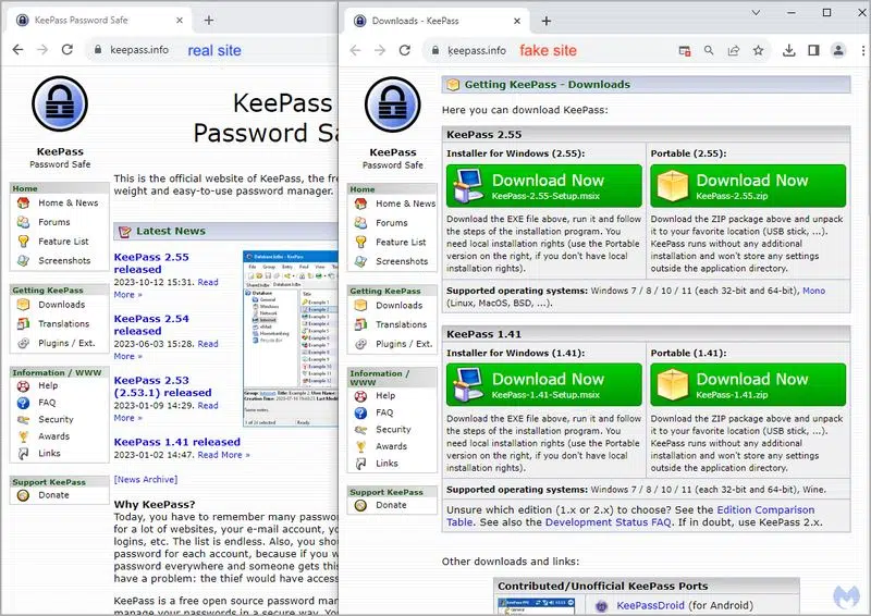 Comment peut on savoir si la version de keepass que l’on utilise est la vrai ? Personnellement j’ai installer keepass il y a un moment et je ne me rappel plus a quoi ressemblait le site a ce moment là